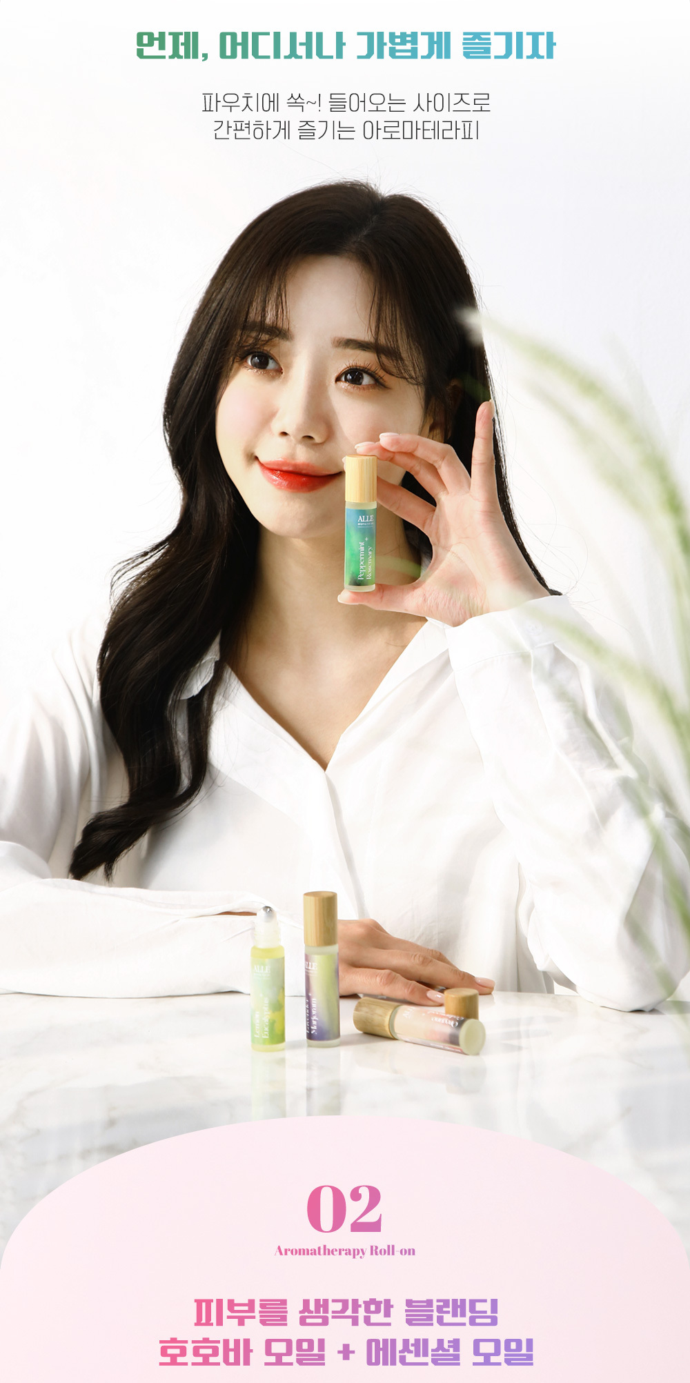 - Peppermint & Rosemary: The refreshing minty scent of peppermint and the fresh grassy scent of rosemary come together to help maintain a clear mind. This oil has a mild, moderate cooling sensation and a soft, sweet herbal scent. When you feel hazy, apply it by rolling it on the temples, between the eyebrows, behind the ears, and other necessary areas.