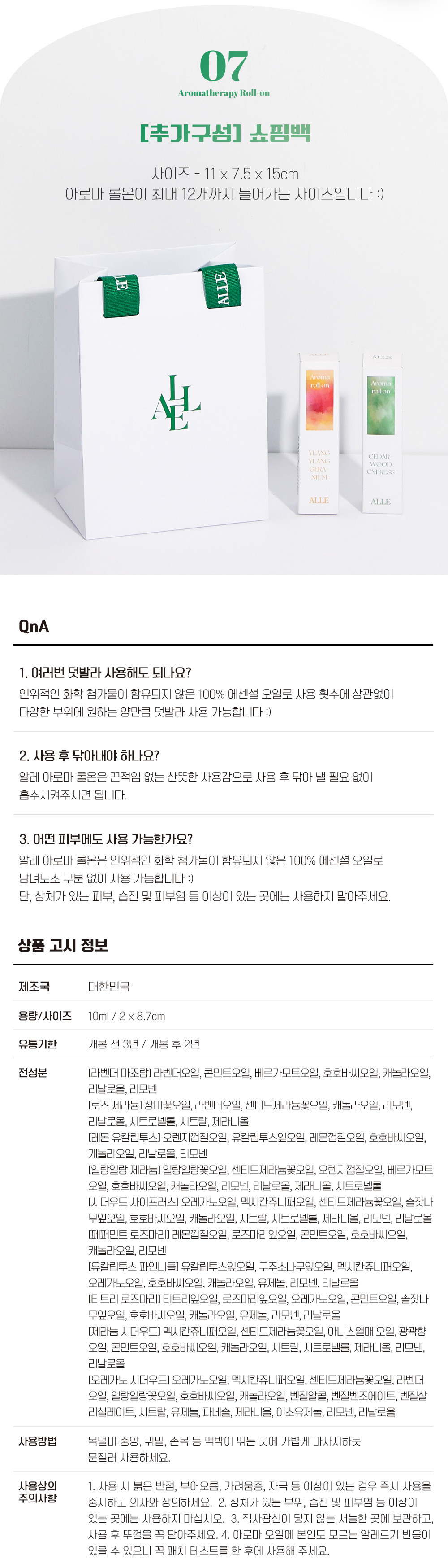 [ALLE] Aromatherapy Roll-On 10ml 1+1 – 100% Plant-Based Oils | 10 Calming Blends with Jojoba & Pure Essential Oils - Made in KOREA