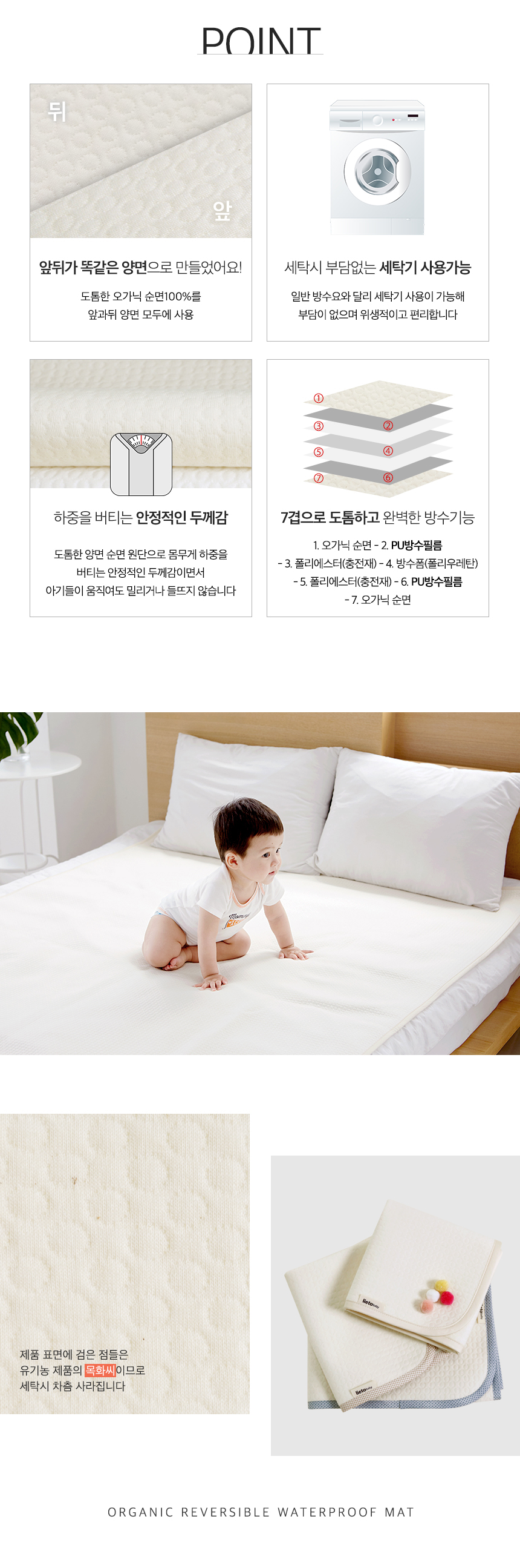 (7-ply ingredients: organic cotton / PU waterproof film / polyester (filler) / waterproof foam (polyurethane))