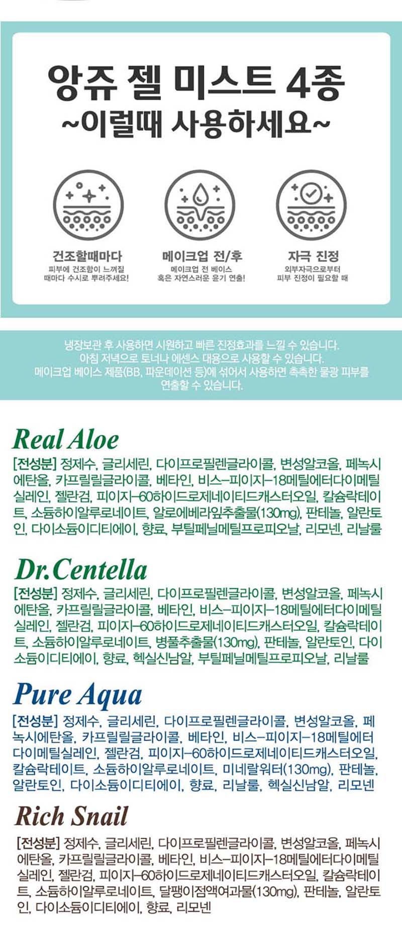 - Formulated with specialized ingredients like Aloe, Centella, Mineral Water, and Snail Mucin for targeted care.