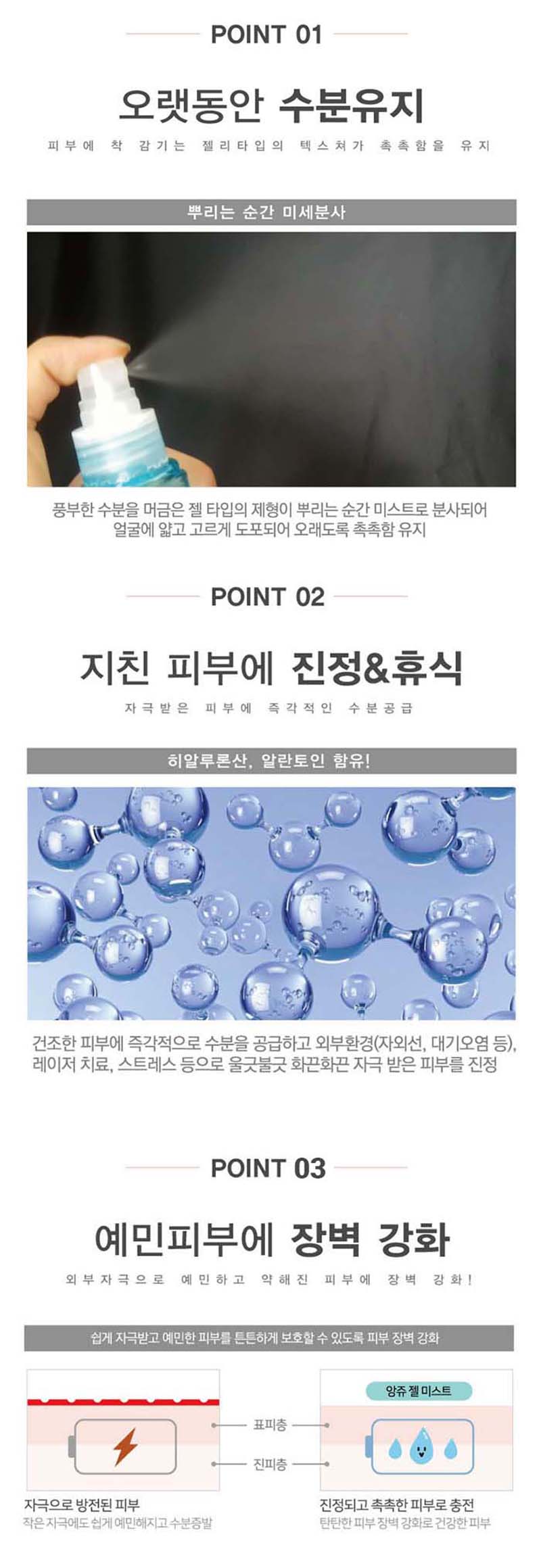 - Innovative Gel-to-Mist formula ensures a high-adhesion moisture layer that stays on the skin longer than water mists.