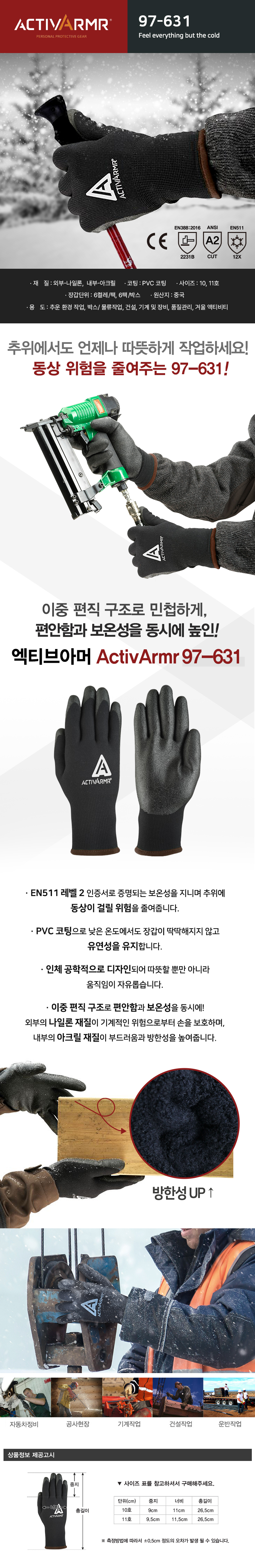 ANSEL ActivArmr Cold Weather Work Gloves 97-631, PVC coated, Exterior-Nylon, Interior-acrylic, EN511 level 2 thermal insulation.