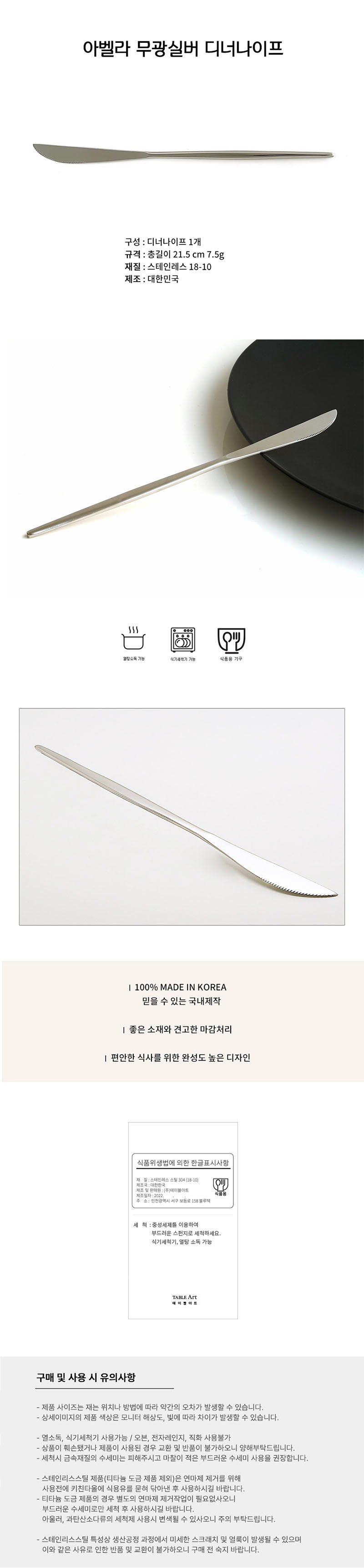 AVELLA Matte Silver Dinner Knife