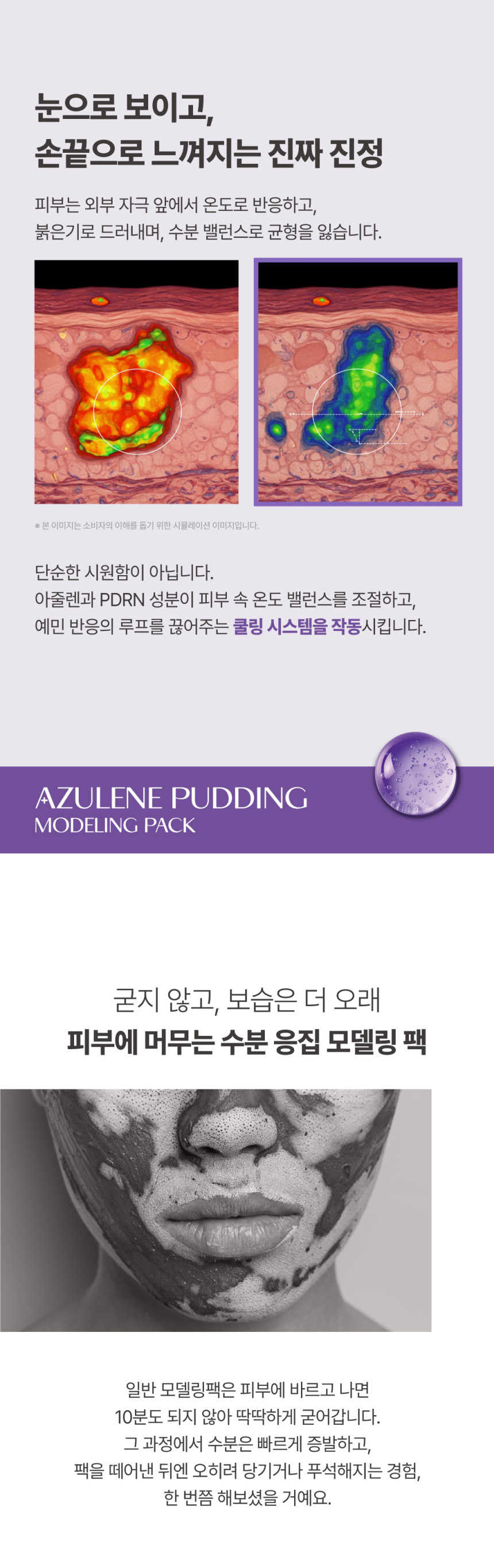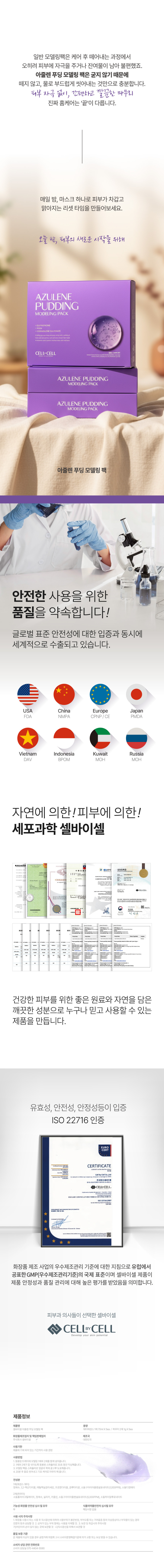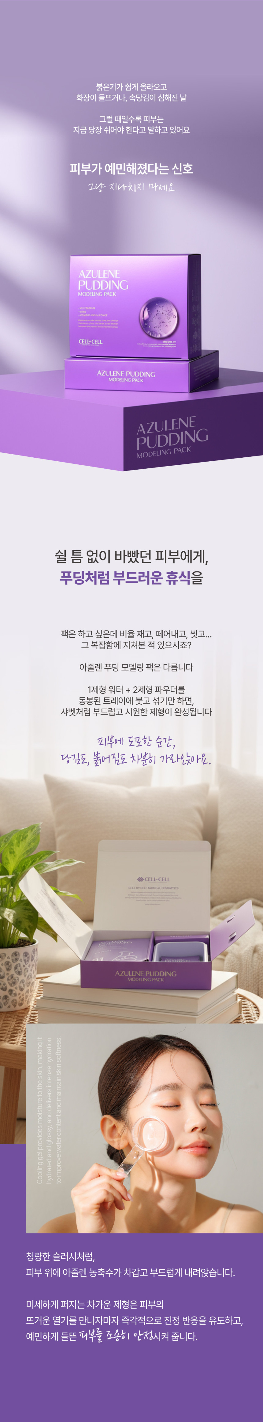 Soothing Relief with Azulene and PDRN Pudding Texture The Cell by Cell Azulene Pudding Modeling Mask is designed to provide immediate relief for sensitive and exhausted skin. Its unique pudding-like texture stays moist without hardening, ensuring that deep hydration and soothing energy are delivered effectively into the skin layers- Azulene and PDRN synergy provides a powerful cooling and calming effect to reduce redness and irritation.