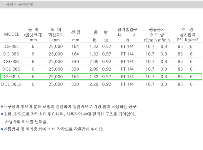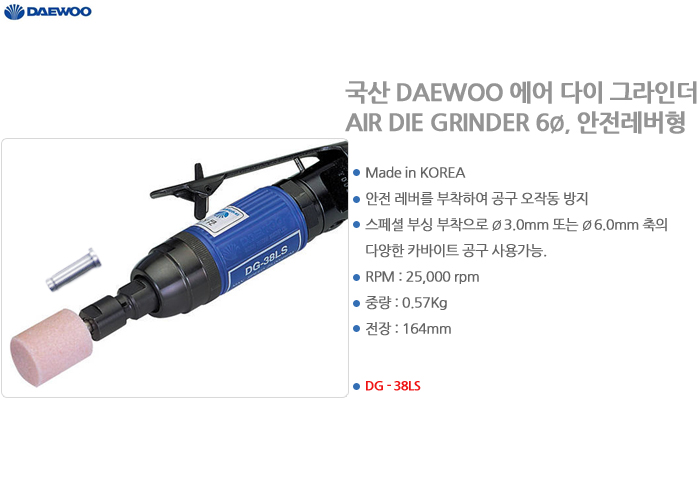 DAEWOO_Tools AIR DIE GRINDER DG-38LS, Safety Lever Type, 25,000 rpm, Total Length 164mm