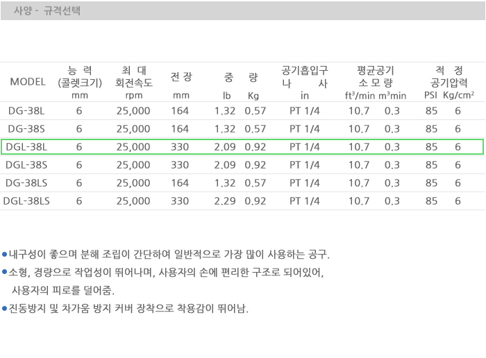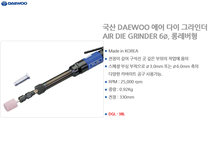 DAEWOO_Tools AIR DIE GRINDER DGL-38L, Long Lever Type, 25,000 rpm, Total Length 330mm