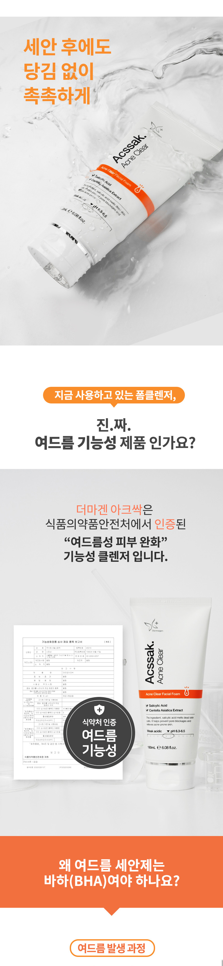 DERMAGEN Pore Toning Cream 80g + Acssak Acne Clear Facial Foam 180mL – Mildly Acidic Cleanser with BHA & Centella Asiatica, Hippophae Rhamnoides Fruit Water _ Made in KOREA