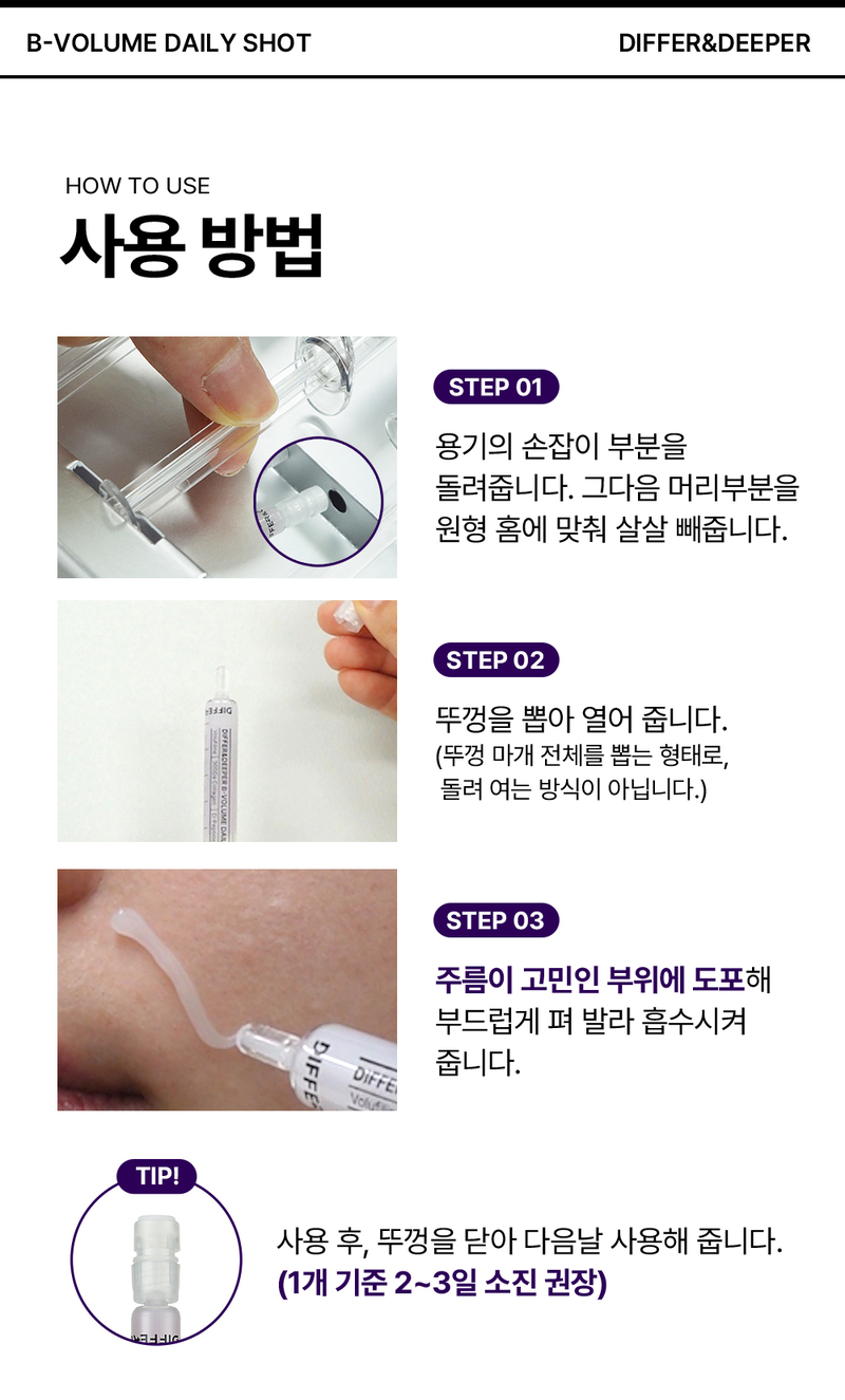 DIFFER&DEEPER B-Volume Daily Shot Starter Pack 2.5ml 2pcs Volufiline Peptide Collagen Instant Wrinkle Care _ Made in Korea