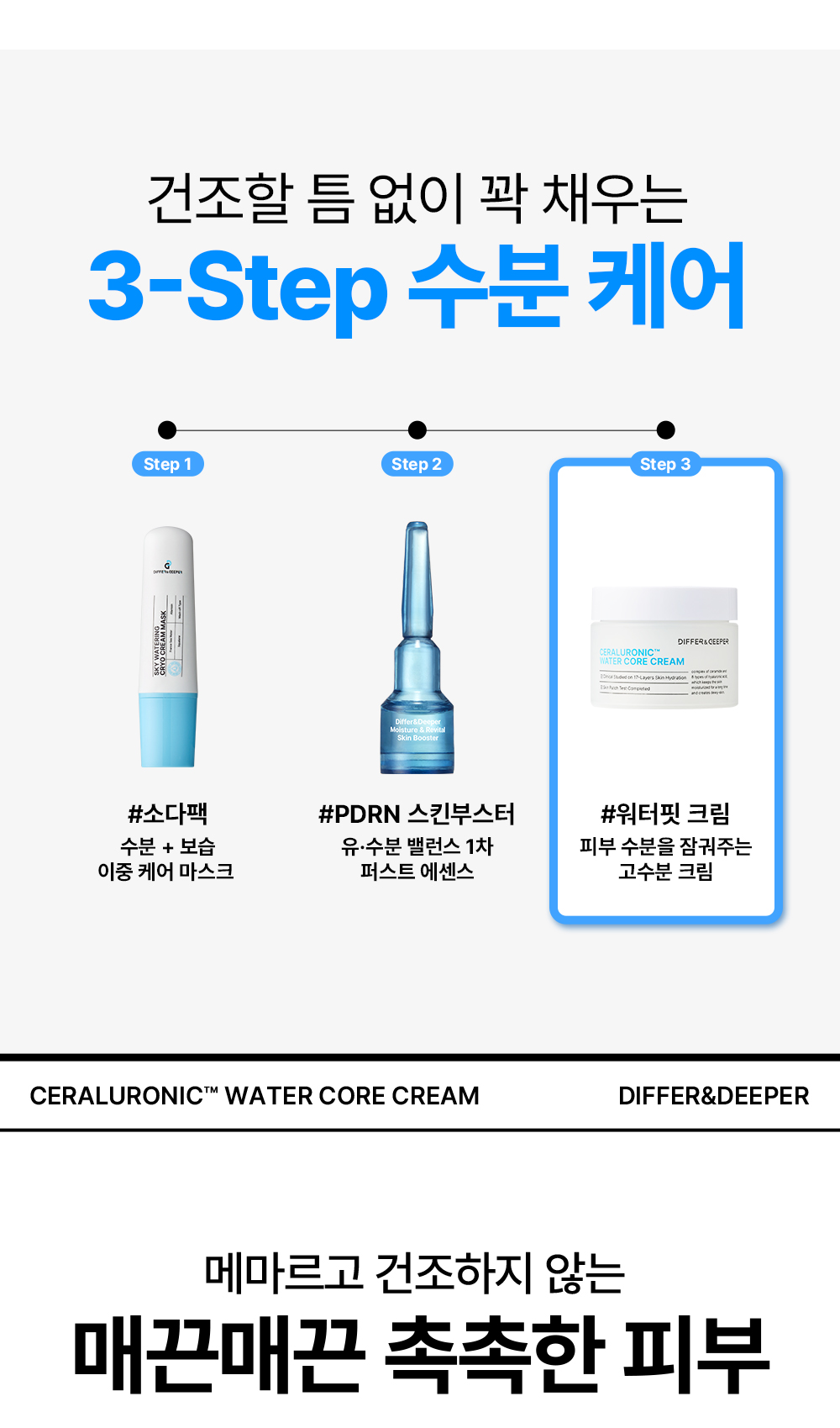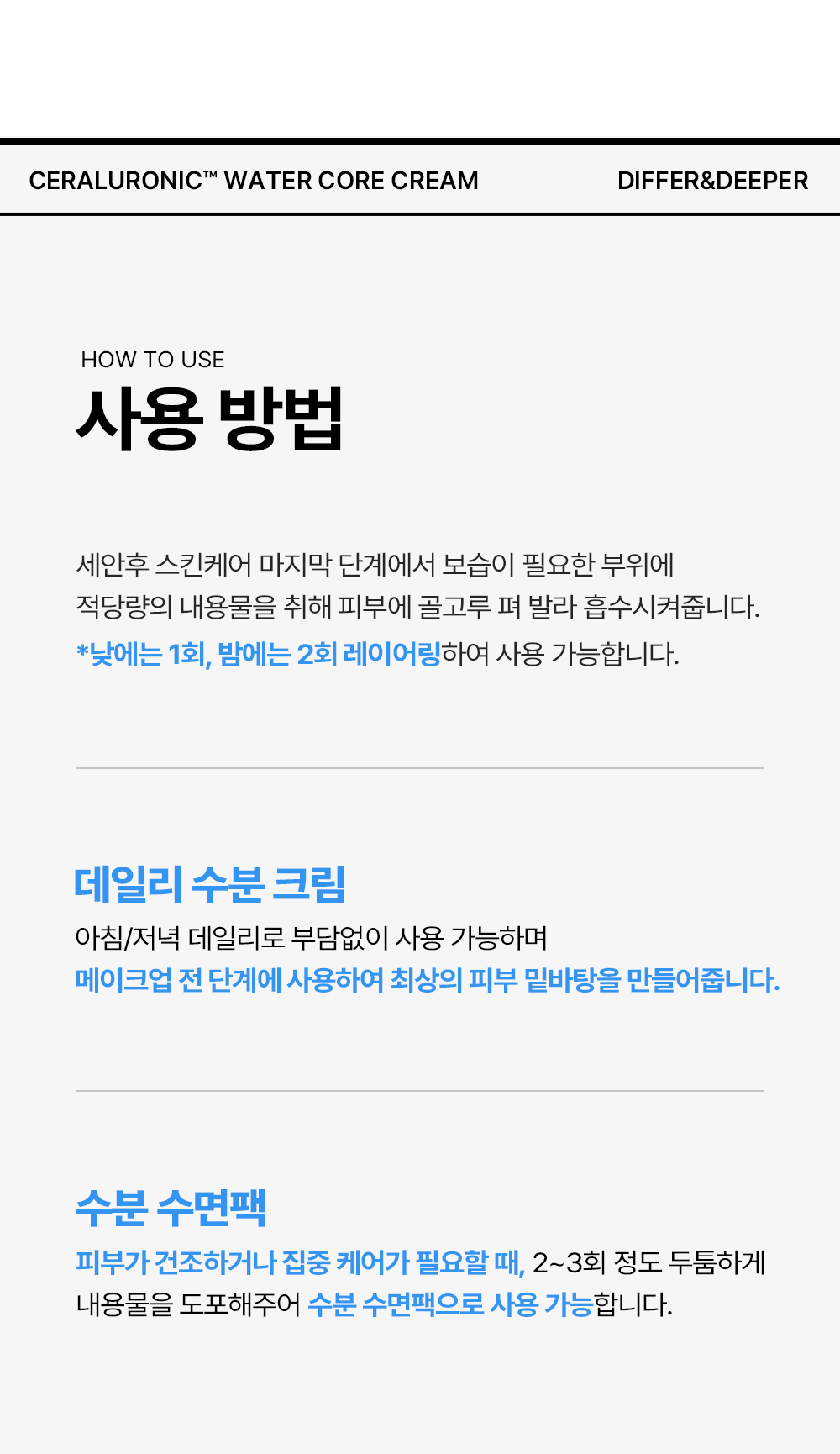 DIFFER&DEEPER Ceraluronic Water Core Cream Intensive 17 Layer Hydration and Moisture Barrier Strengthening Formula _ Made in Korea