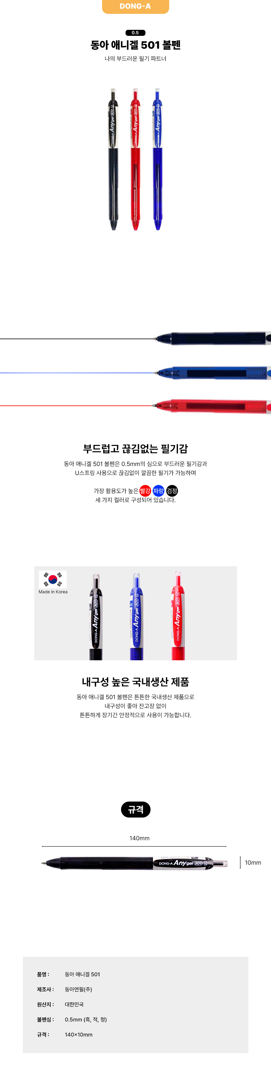 Experience the smooth, skip-free glide of a premium gel pen. DONG-A Anygel 501 features a specialized U-Spring mechanism and a sleek design for flawless daily writing.