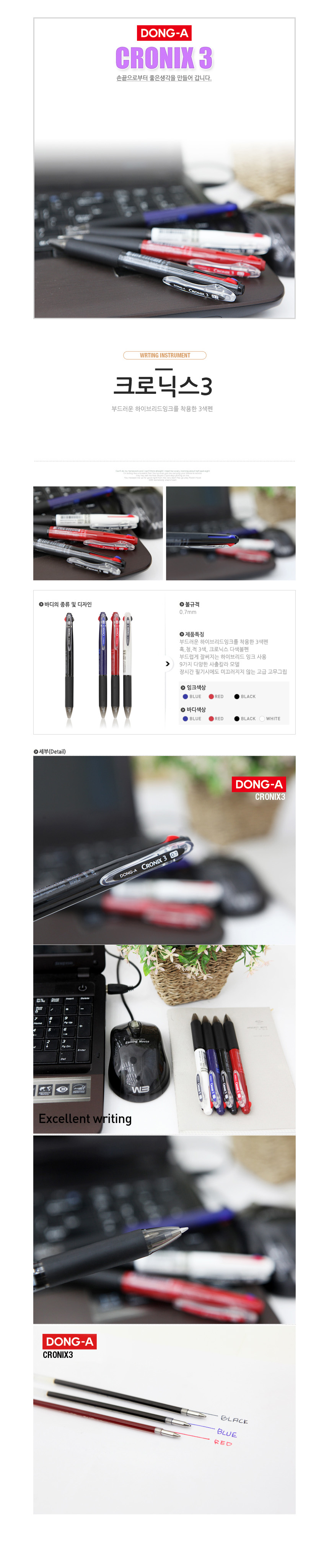 The perfect 3-in-1 tool for seamless and comfortable writing. DONG-A Chronix 3 features advanced low-viscosity hybrid ink for a smooth, skip-free experience.