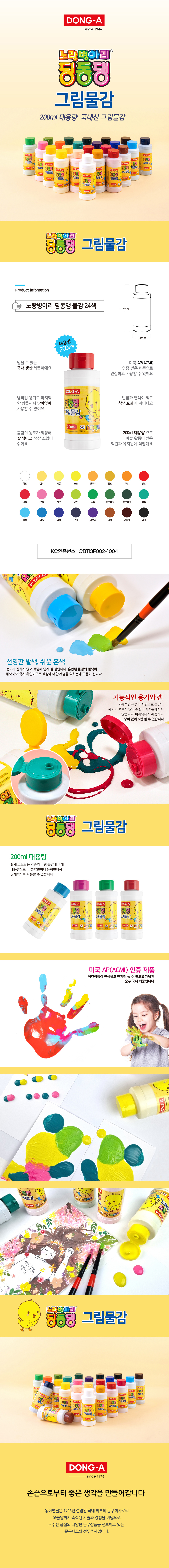 DONG-A DingDongDang Blue Poster Paint is a must-have primary color for any professional art setting or home studio. This 200ml large-capacity bottle ensures you have plenty of paint for creating deep oceans, clear skies, and everything in between. Featuring an advanced functional cap to prevent messy spills and preserve freshness, this paint is backed by the globally recognized ACMI AP certification, confirming its non-toxic safety for children. Its creamy consistency allows for smooth application and effortless mixing with other colors, making it an essential tool for developing young artists' understanding of the color wheel.
