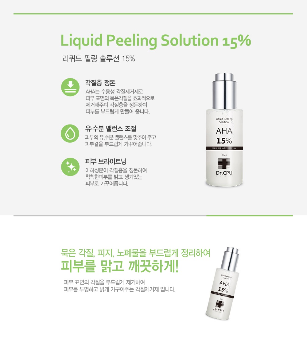 DR. CPU Liquid Peeling Solution AHA 15% 50ml _ High - concentration formula for effective exfoliation and skin brightening _ Made in Korea