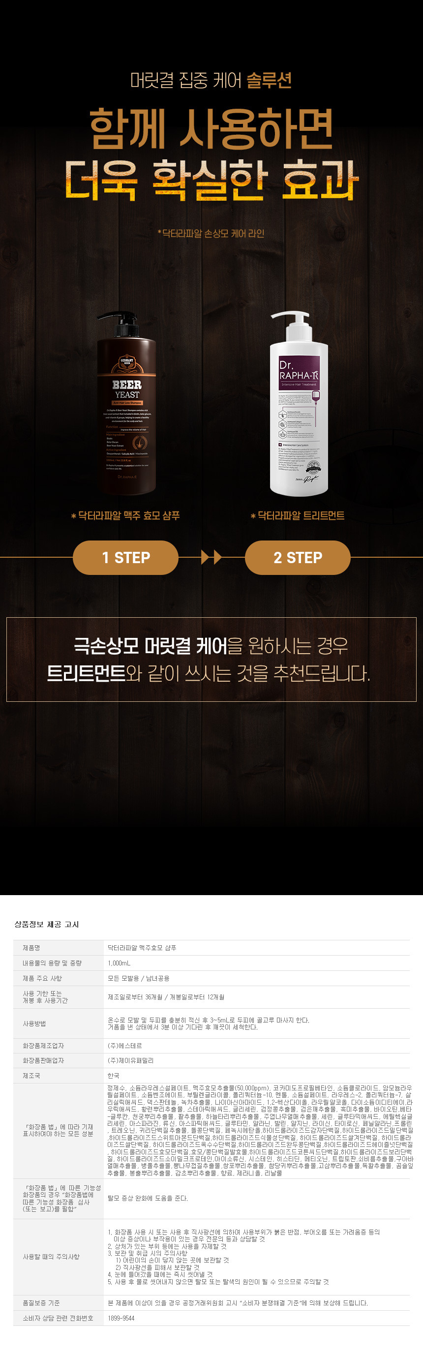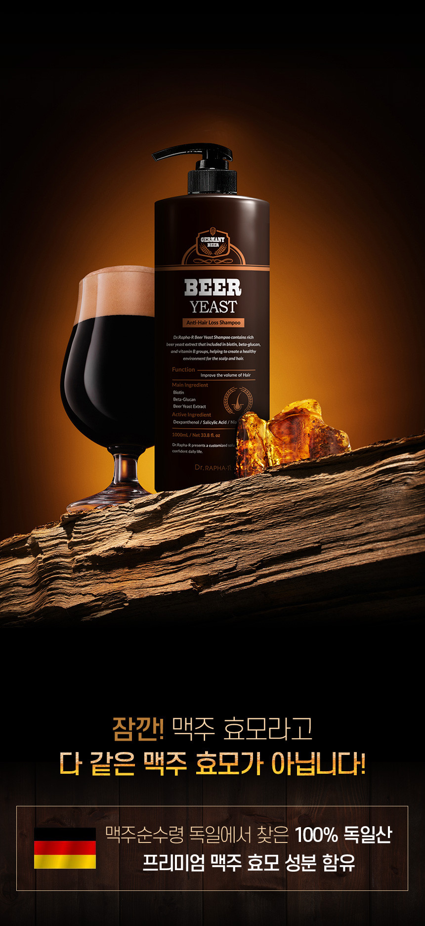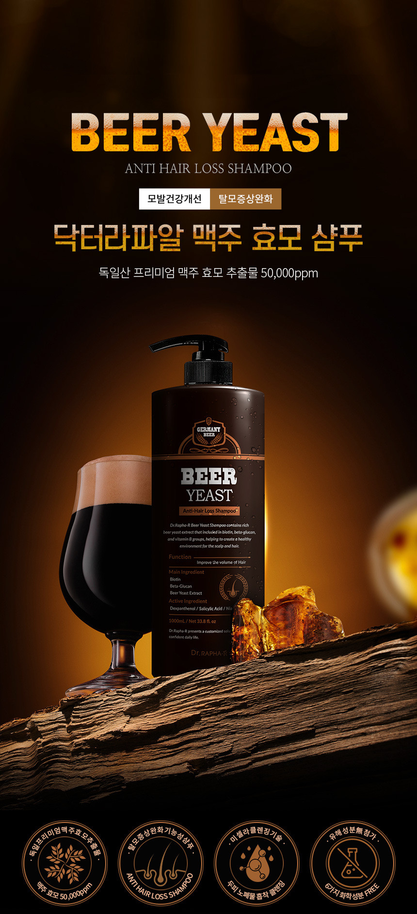 Dr.RAPHA-R Beer Yeast Anti-Hair Loss Shampoo 1L – German Beer Yeast, Micellar Deep Clean, Boosts Volume + Strength, Biotin & Amino Acid Rich, Low-Irritation pH Care _ Made in KOREA