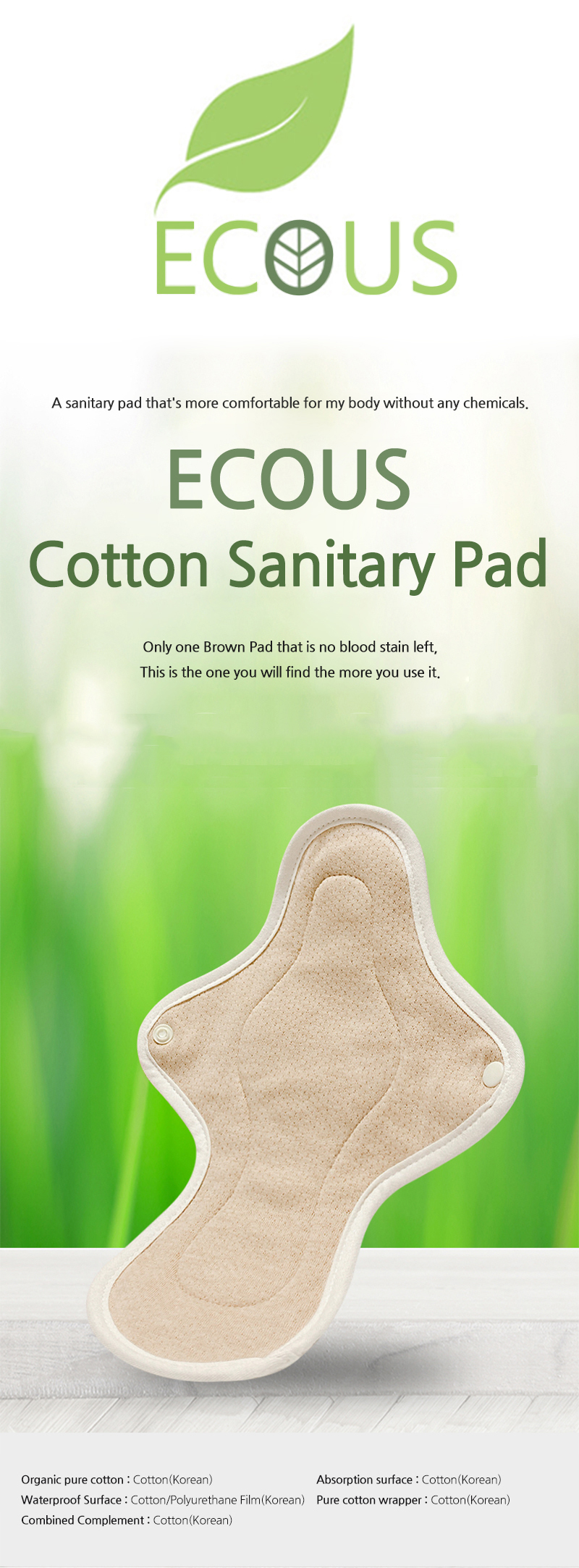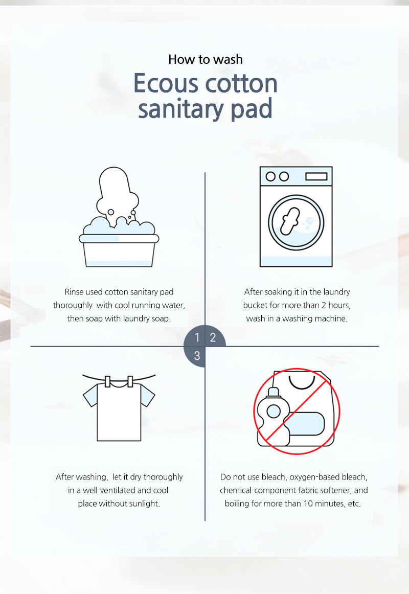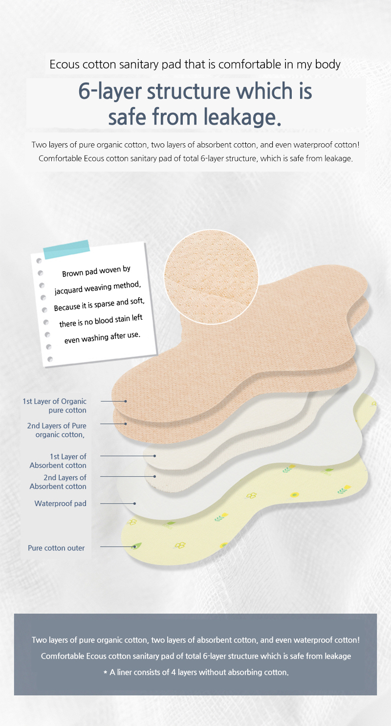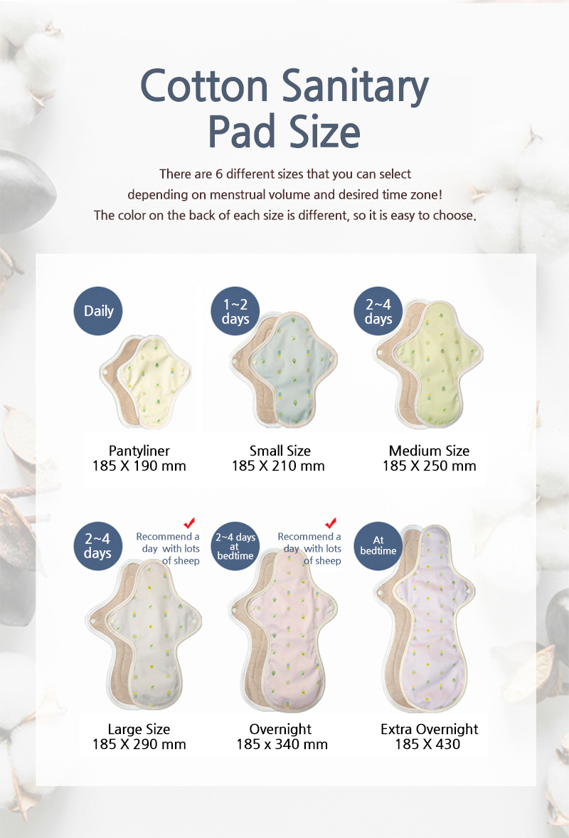 [ECOUS] Comfortable Cotton Overnight Pad _ Eco Sanitary Pads, Organic Cotton, Organic Reusable Cotton Pads, Sanitary Napkins, Menstrual Pads, Made in Korea
