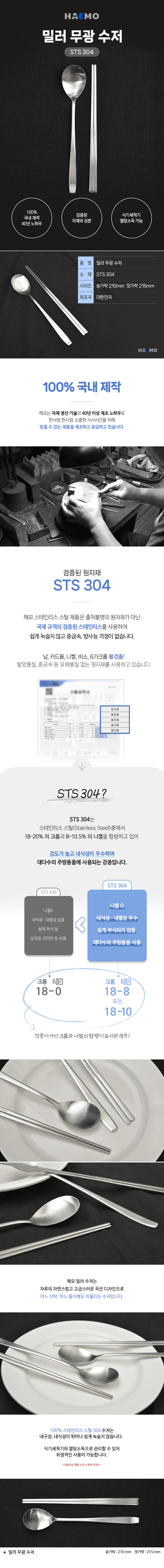 [HAEMO] Miller Matte Spoon & Chopsticks Set (Chopsticks 215mm) – Elegant Curved Design, Human-Friendly Stainless Steel, Made in Korea
