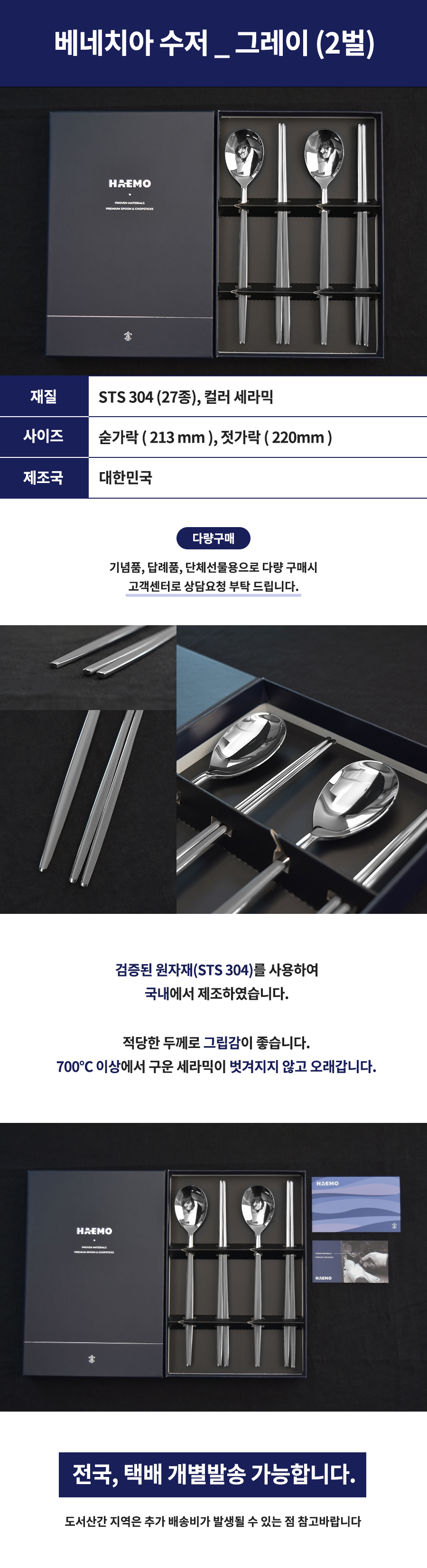 [HAEMO] Venezia Spoon Chopsticks Gray 2 Set (BK) _ Reusable Stainless Steel, Korean Chopstick Spoon _ Made in KOREA