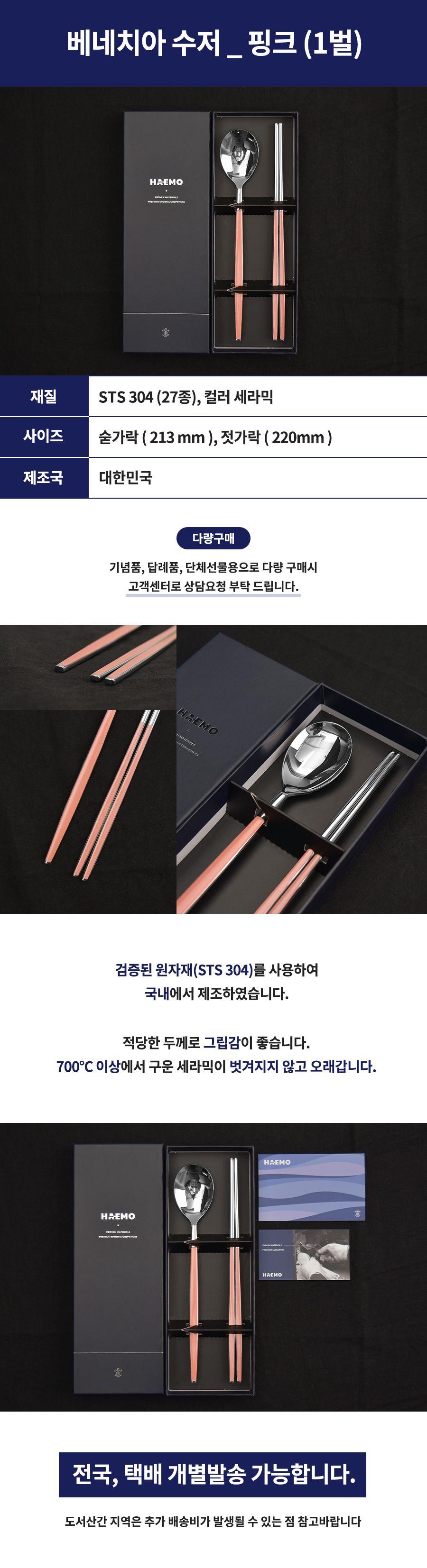 [HAEMO] Venezia Spoon Chopsticks, Pink 1 Set (BK) _ Reusable Stainless Steel, Korean Chopstick Spoon _ Made in KOREA