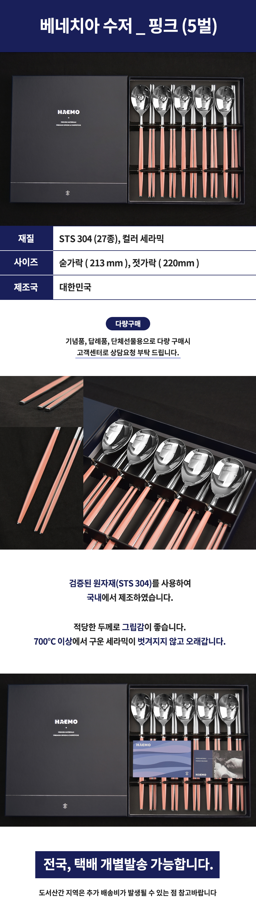 [HAEMO] Venezia Spoon Chopsticks, Pink 5 Set (BK) _ Reusable Stainless Steel, Korean Chopstick Spoon _ Made in KOREA