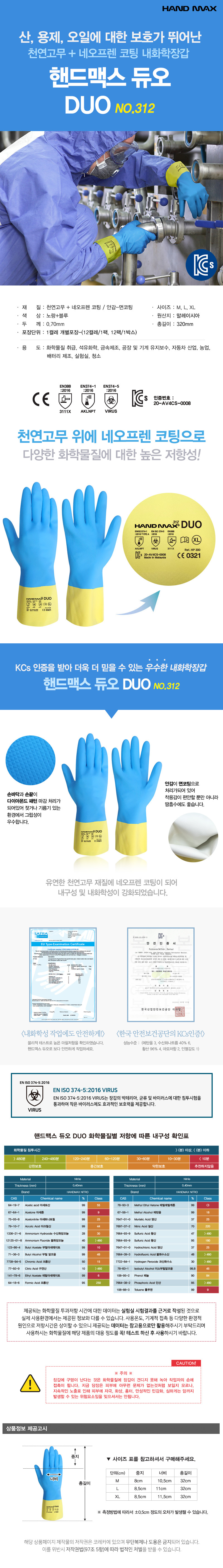 HANDMAX Duo NO.312, KCs, CE Certified, Natural Rubber + Neoprene, Acid-resistant and Chemical-resistant Gloves, Length 32cm
