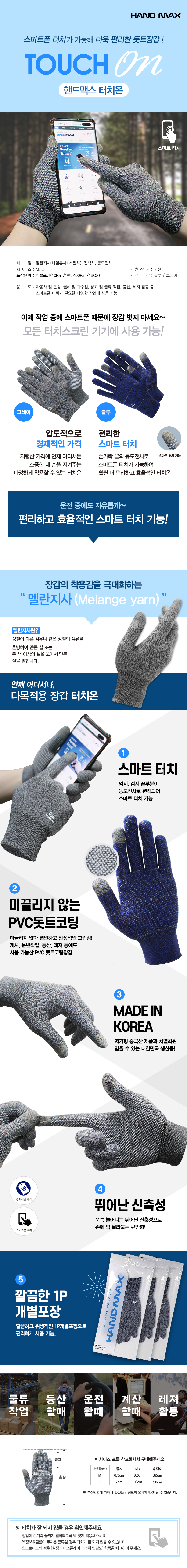 HANDMAX Touch On NO.117-8, 10 Pairs, PVC Dot Coating, Melange Yarn (Nylon + Spandex), Copper Wire Transfer, multi-purpose Gloves that can touch smartphones, Blue, Gray - Made in Korea
