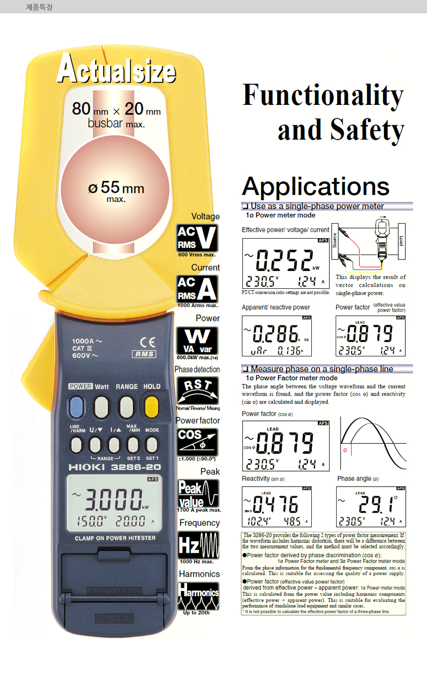 HIOKI CLAMP ON POWER HiTESTER 3286-20, Single-Phase and Three-Phase Handheld Power Meter with Harmonic Analysis Up to 20th Order