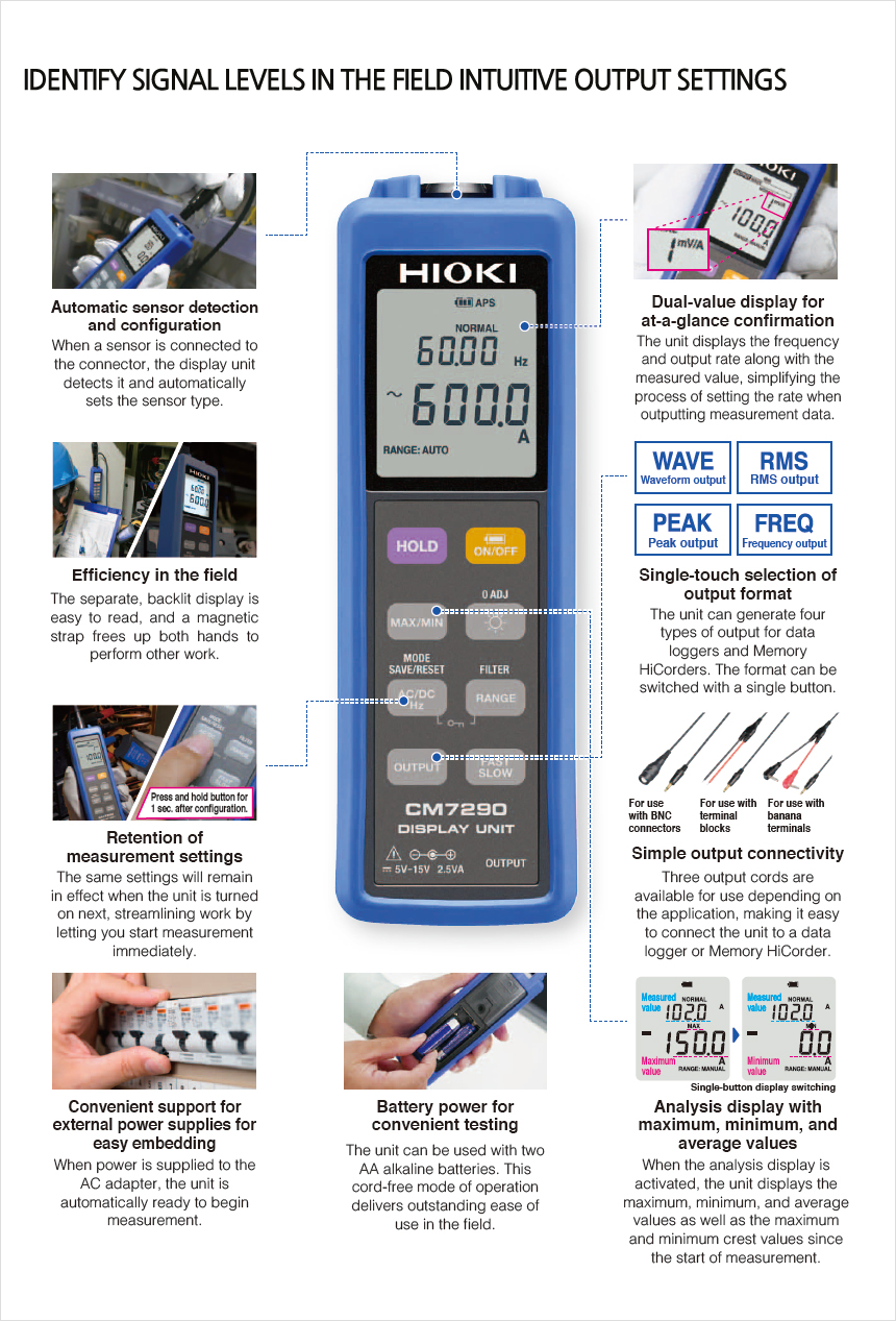 HIOKI DISPLAY UNIT CM7290, Multi-functional Receiving/Display Unit to Use Right on the Field or Output to Advanced Recorder or Logger