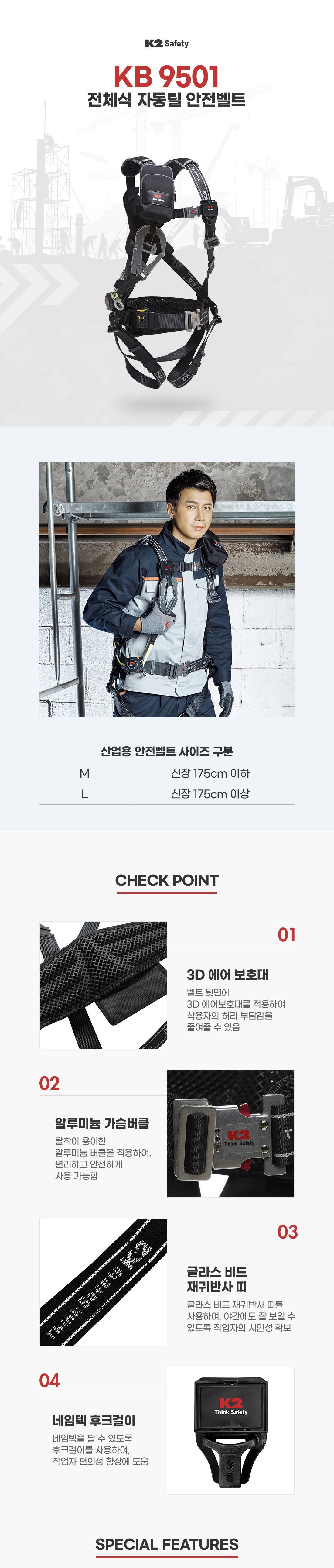 K2 Safety Industrial Full Body Harness KB-9501 with Auto-Reel Lanyard