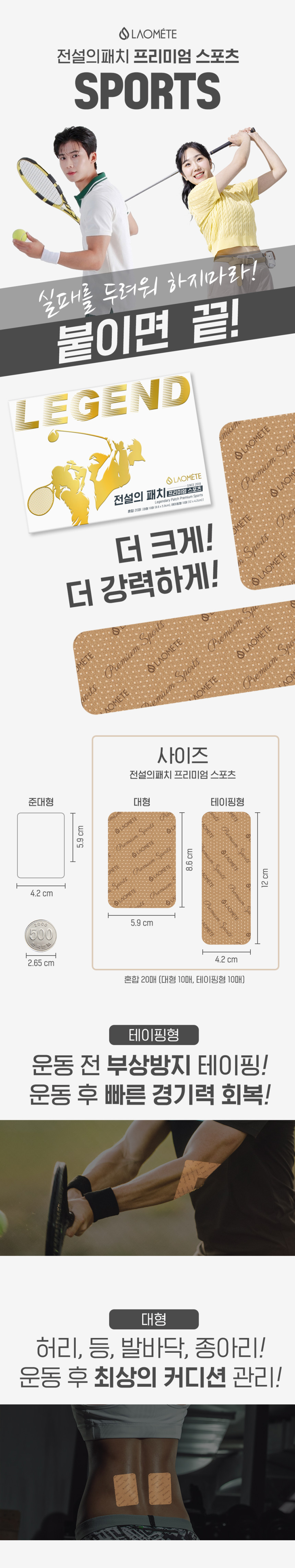 [LAOMETE] Legendary Patch Premium Sports (20 Patches) – Injury Prevention Before Exercise, Rapid Recovery After, Far-Infrared Emission, Muscle Massage Effect_ Made in Korea