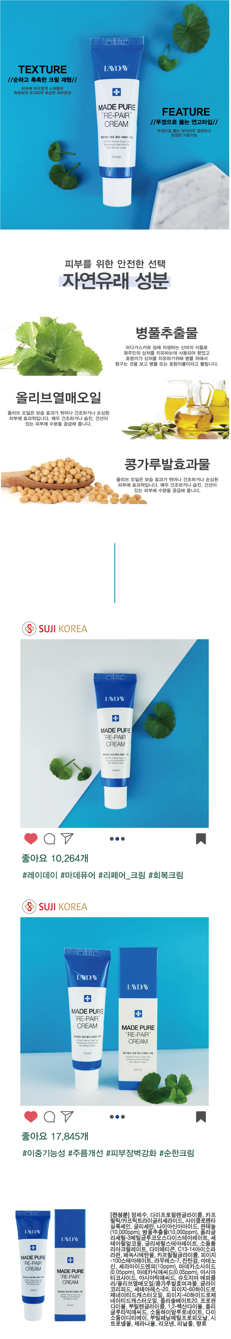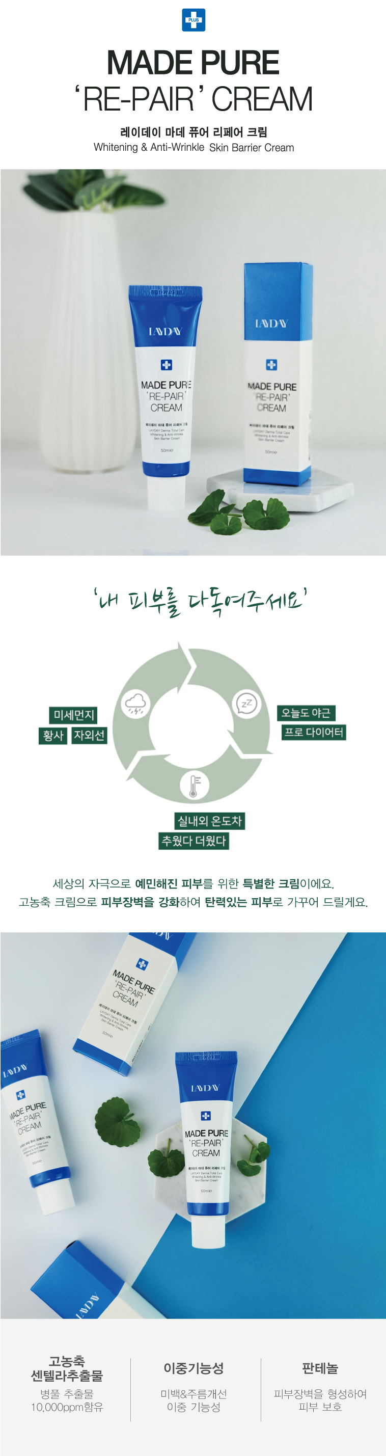 [LAYDAY] Made Pure 'RE-PAIR' Cream 50ml x 3ea – Intensive Panthenol & Cica Complex for Sensitive Skin | Niacinamide + Adenosine | Deep Moisture Repair - Made in KOREA