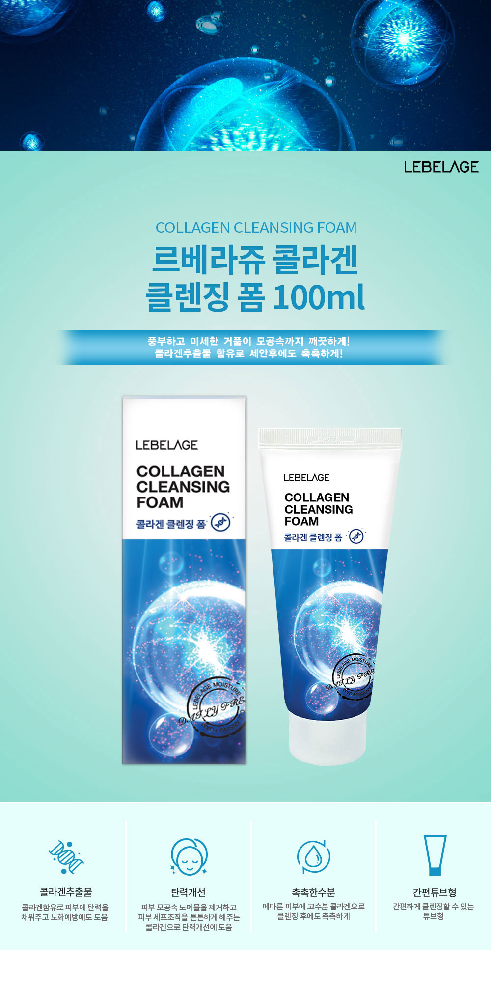 LEBELAGE Collagen Cleansing Foam 100ml Firming and Revitalizing Face Wash with Hydrolyzed Collagen for Elastic Skin _ Made in Korea