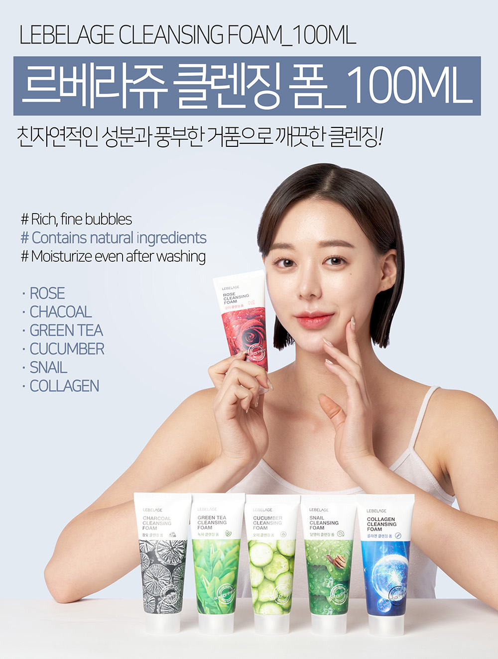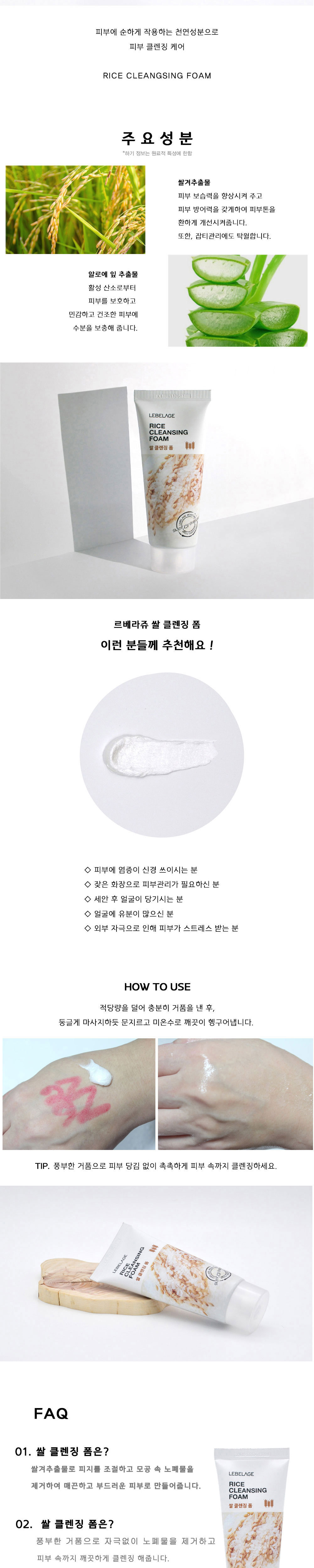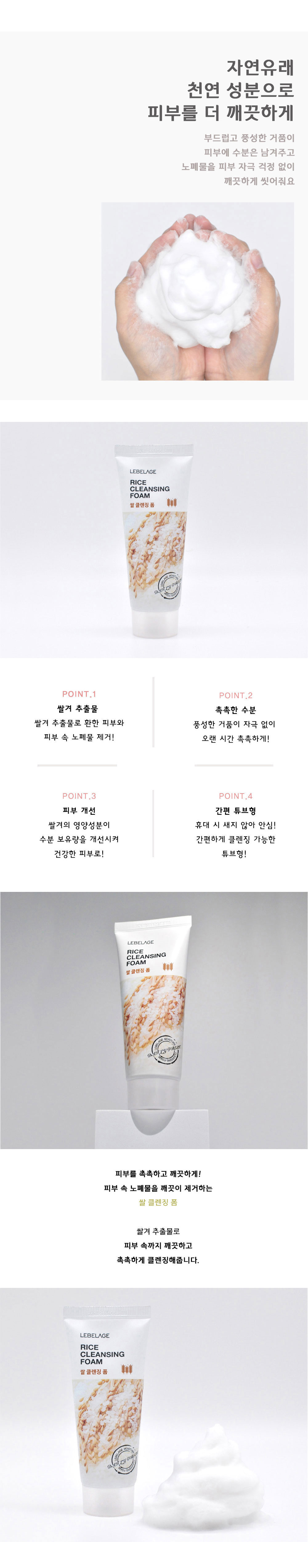 Experience the purity of nature with LEBELAGE Rice Cleansing Foam. Formulated with nutrient-rich Rice Bran Extract, this cleanser creates a dense, fine lather that penetrates deep into pores to remove impurities and excess sebum. It leaves your skin feeling remarkably soft, clear, and hydrated without the tight, stripped feeling after washing.