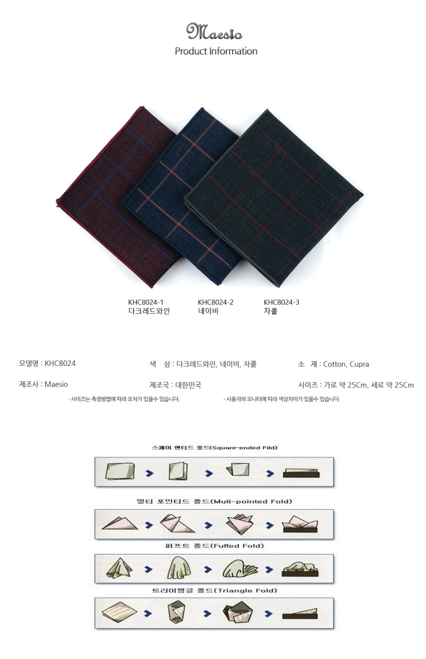 [MAESIO] KHC8024 Handkerchief Check_ Men's Handkerchief Mens Pocket Squares, Made in Korea