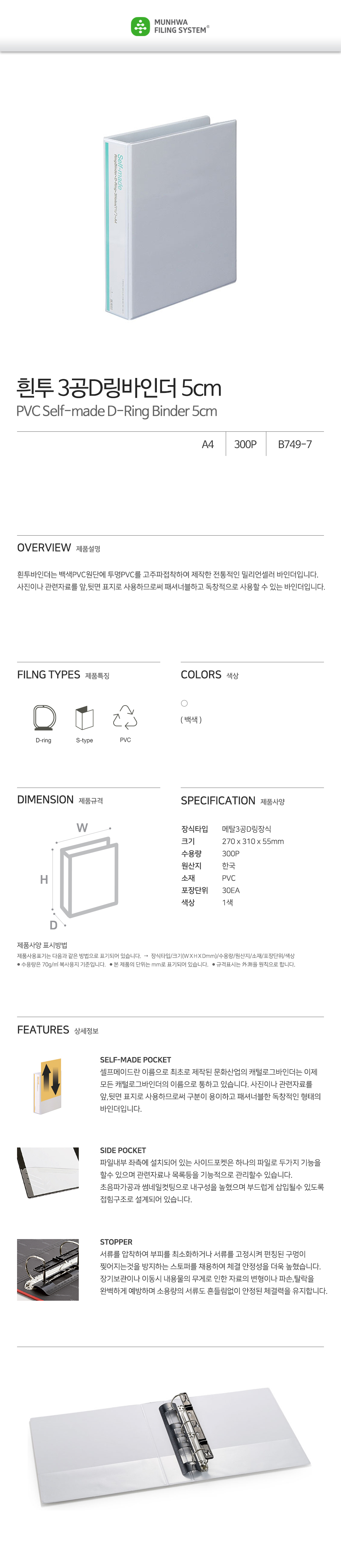 The Munhwa B749-71 is the original "Self-Made" catalog binder that set the global standard for customizable presentation tools. Featuring high-frequency welded clear pockets on the front, back, and spine, it allows for complete personalization with your own graphics and titles. Engineered for high-volume use, this 1.5-inch D-ring binder combines advanced durability with functional features like internal side pockets and a high-security paper stopper, making it the premier choice for corporate manuals and portfolios.