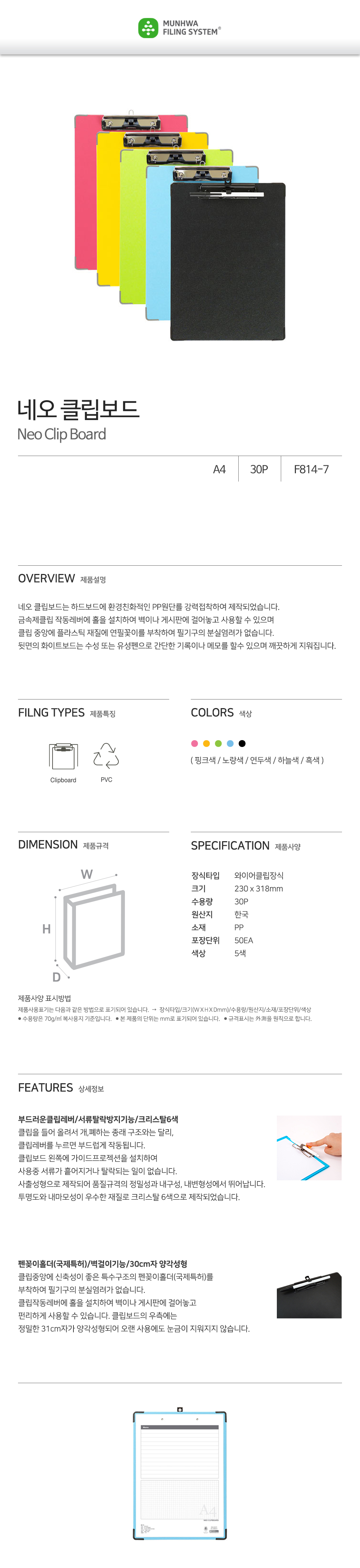 The Munhwa File Neo Clipboard is an innovative, environmentally friendly PP-coated writing board designed for maximum versatility. Unlike traditional boards, it features a smooth-action lever clip and a unique whiteboard backing that allows for quick notes with dry-erase markers. With its side guide projection to keep papers perfectly aligned, it is the ultimate tool for organized professionals and educators who need more than just a standard clipboard.