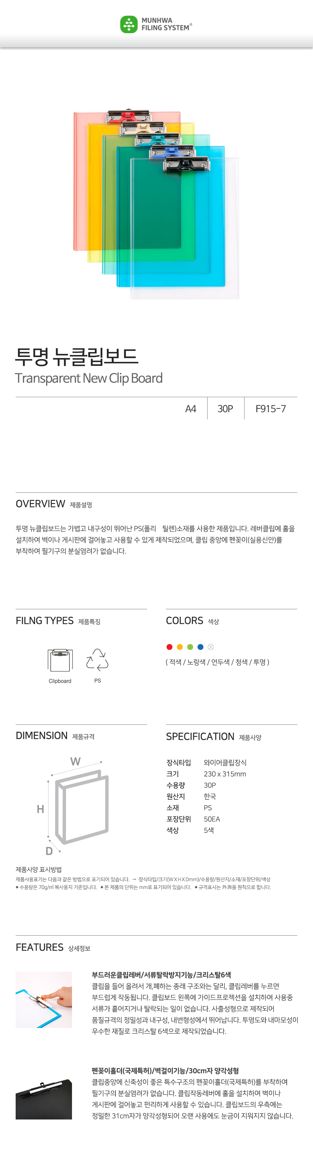 The Munhwa File Transparent New Clipboard is a high-quality organizing tool crafted from premium PS (Polystyrene), offering a perfect balance of lightweight portability and exceptional durability. Designed for professionals, students, and industrial sites, this clipboard ensures your documents stay secure while providing a smooth writing surface anywhere you go.