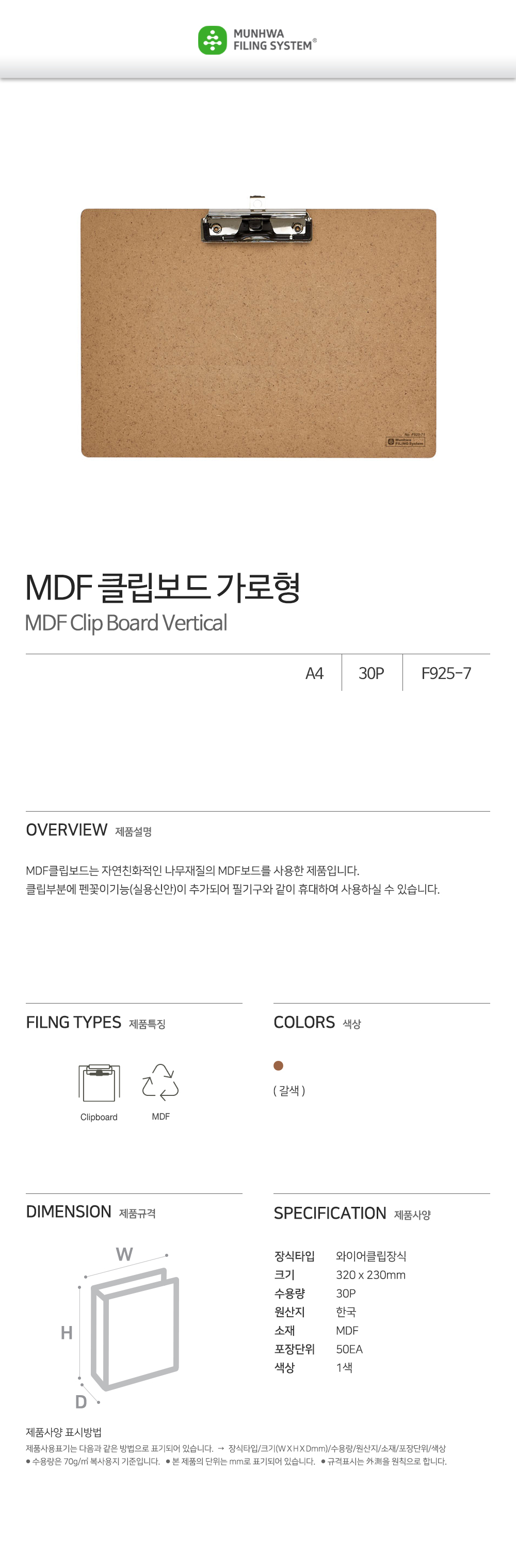 The Munhwa File Landscape MDF Clipboard is a specialized writing tool crafted from natural wood-based MDF, specifically designed for horizontal layouts such as charts, spreadsheets, and drawings. It provides an exceptionally rigid writing surface with an organic feel. Featuring a heavy-duty side wire clip and a built-in pen holder, it is the perfect solution for engineers, accountants, and medical staff who manage wide-format documents with eco-friendly efficiency.