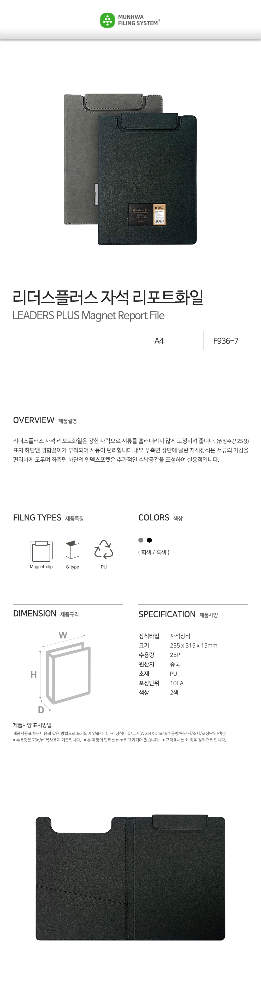 Munhwa File Leaders Plus Premium A4 Magnetic Report Folder with Business Card Slot and Index Pocket Black Grey