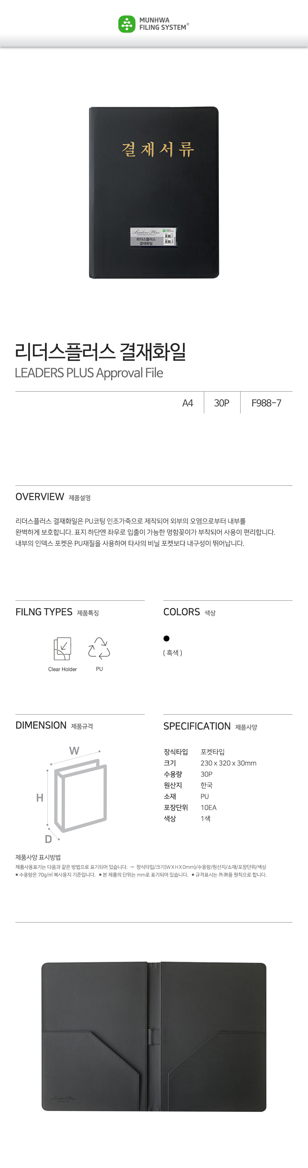 Munhwa File Leaders Plus Premium PU Leather Signature Business Folder with Business Card Slot Black Made in Korea
