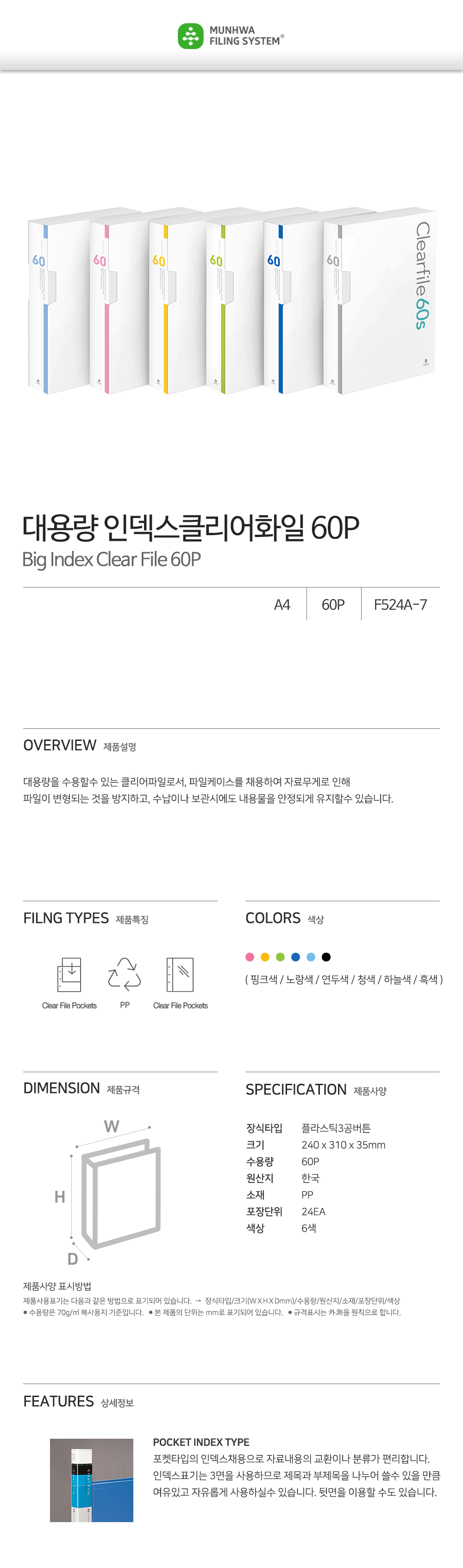 The Munhwa F524A-7 is a premium archival system engineered for those who need to manage substantial document sets with maximum stability. Featuring 60 high-transparency pockets, this file holds up to 120 pages back-to-back. To counter the natural sagging that happens with high-capacity files, it includes a specialized outer protective case. This case acts as a structural support, ensuring the binder remains perfectly upright and protected from dust, moisture, and light-induced fading over time.