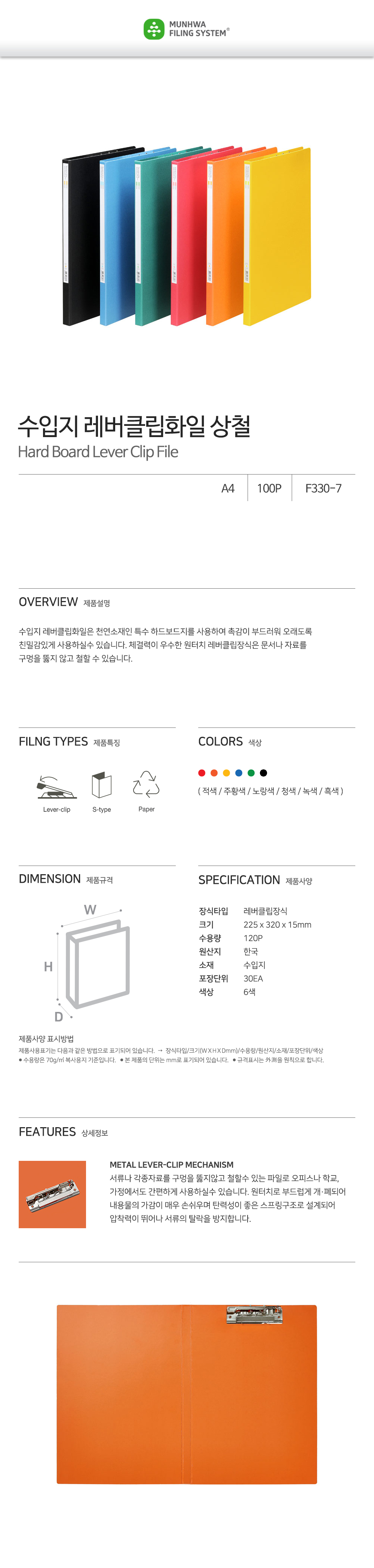 The Munhwa F330-71 is a sophisticated professional folder crafted from high-quality imported specialty hardboard. Unlike standard plastic files, this natural-material cover offers a soft, premium tactile experience that grows more familiar with long-term use. This Top-Bind (Landscape opening) model is equipped with a high-tension Metal Lever-Clip Mechanism, allowing you to secure up to 120 sheets of A4 paper without ever needing a hole punch. It is the ideal choice for preserving the integrity of original contracts, blueprints, and professional reports.
