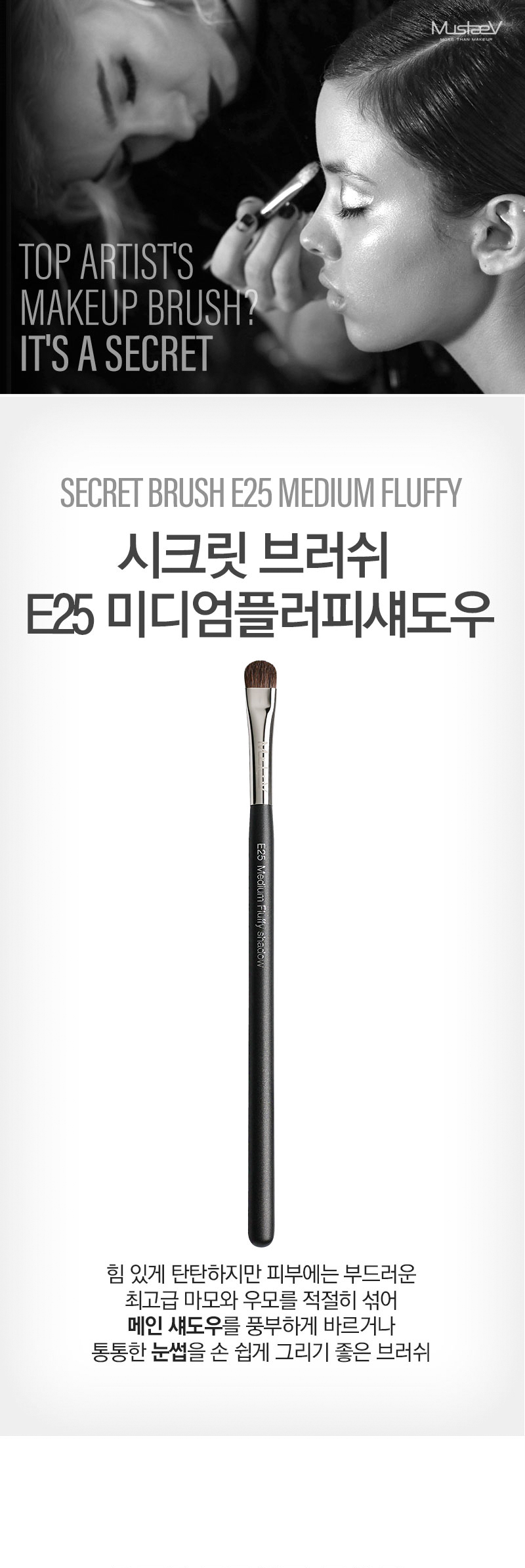 [Mustave] Secret E25 Medium Fluffy Shadow Brush _ Soft and Resilient Premium Makeup Brush _ Made in Korea