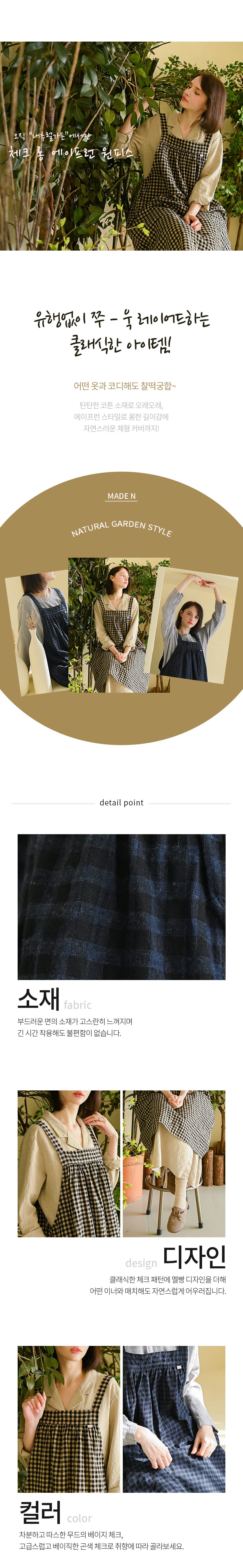 [Natural Garden] MADE N Check Long Air Apron Dress_High quality material, cotton material, natural body cover_ Made in KOREA