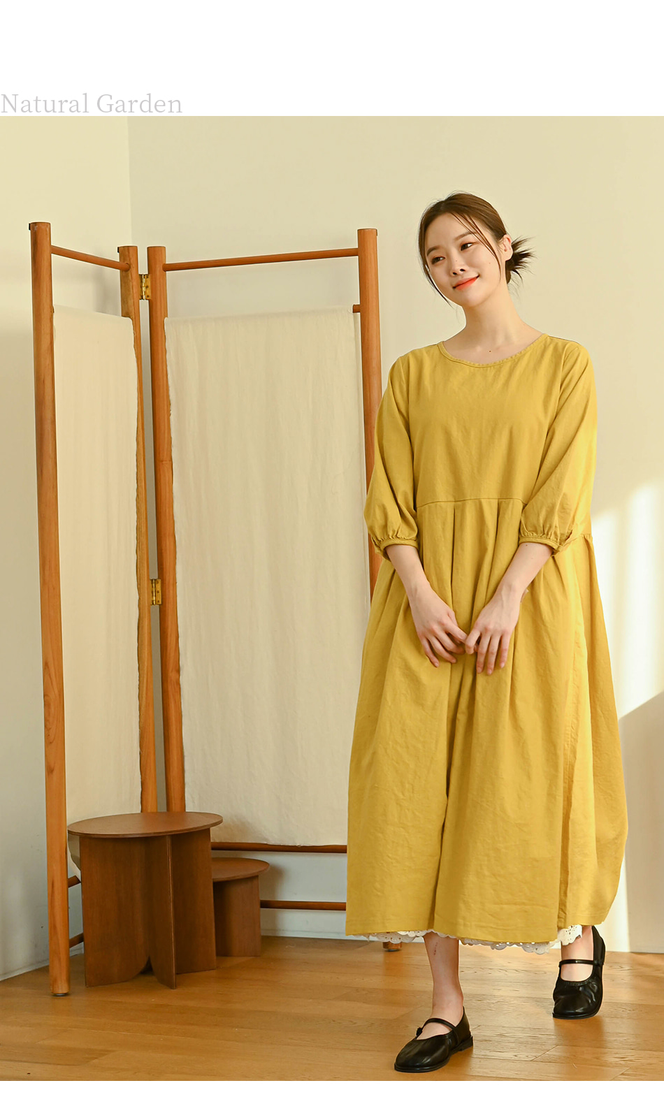 [Natural Garden] MADE N Gather Sleeve Linen Dress_High-quality material, linen material, eco-friendly material_ Made in KOREA