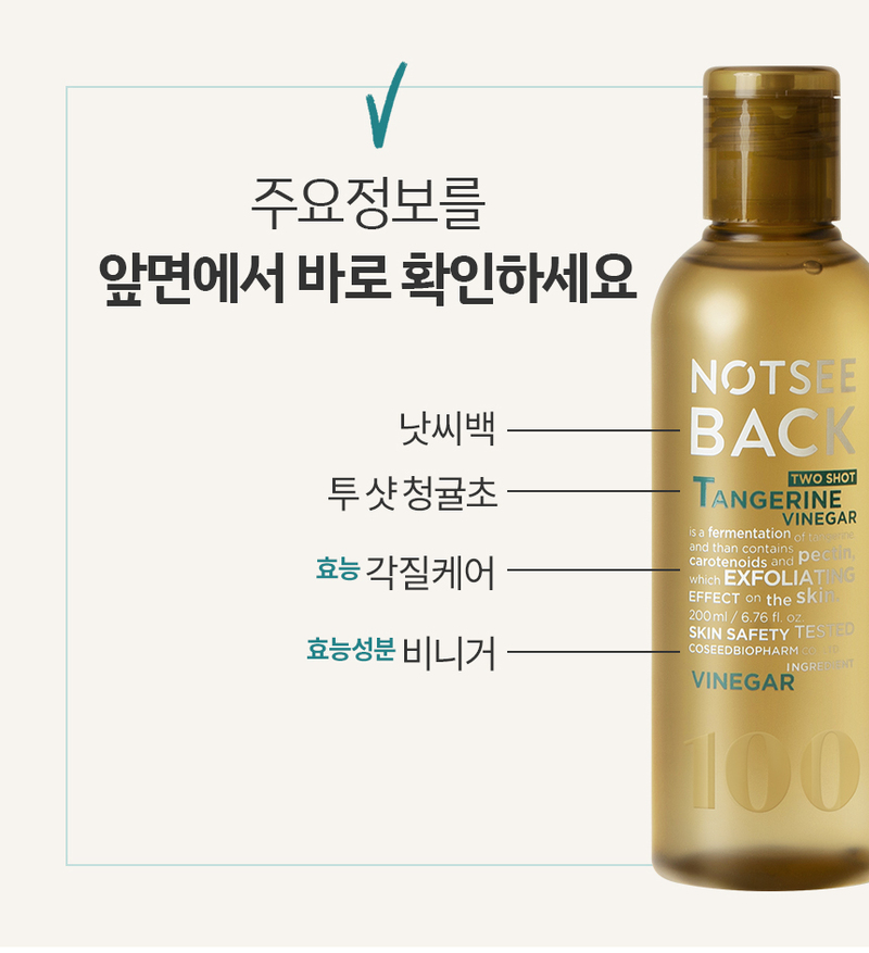 NOTSEE BACK Two-Shot Tangerine Vinegar Toner 200ml _ Vegan & Hypoallergenic Daily Exfoliating Toner_Made in Korea