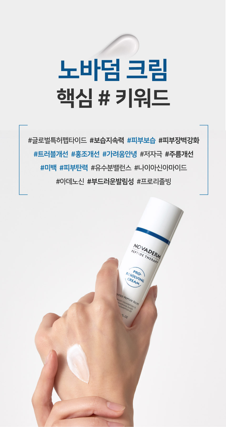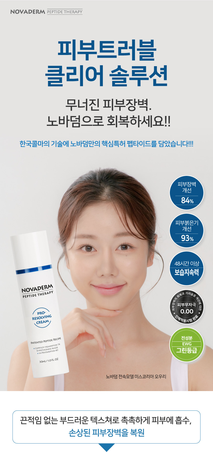 Contains NOVADERM's patented peptide ingredient, which improves damaged skin barriers by 84.2%, soothes skin redness by 93.1%, and moisturizes skin by 104.5% after just one use. (Human efficacy test completed)