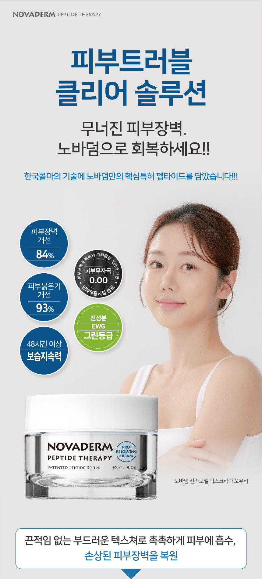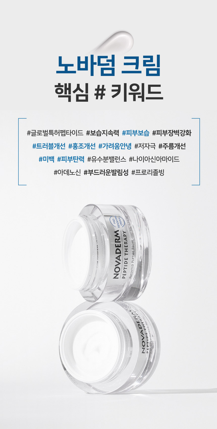 Contains NOVADERM's patented peptide ingredient, which improves damaged skin barriers by 84.2%, soothes skin redness by 93.1%, and moisturizes skin by 104.5% after just one use. (Human efficacy test completed)