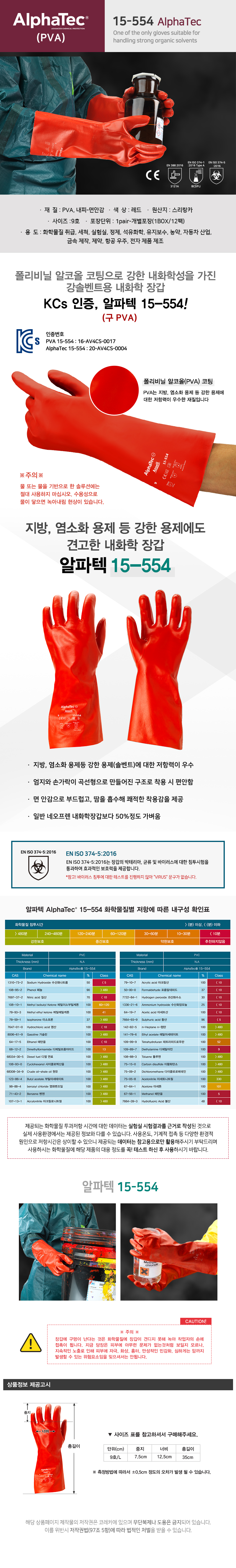 NSEL Alphatech Chemical Resistant Gloves 15-554, PVA polyvinyl alcohol material, Cotton lining, 35cm, KCs certified, EN ISO 374-5:2016