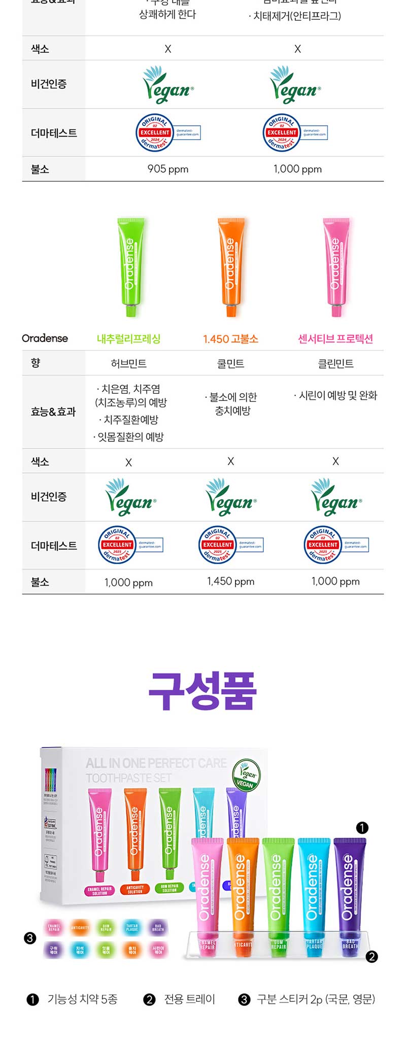 ORADENSE All-in-One Perfect Care Toothpaste Set (35g × 5 Types)