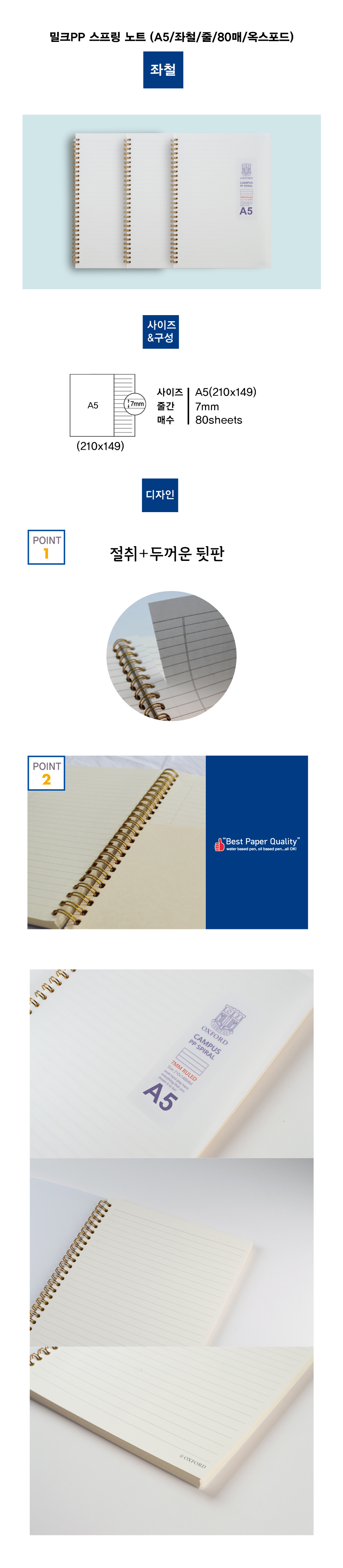 [Oxford] 3500 Milk PP Cover Spiral Notebook A5 | Lined / 80 Sheets | 210*149mm | Left Twin Spiral Bound | Made in Korea